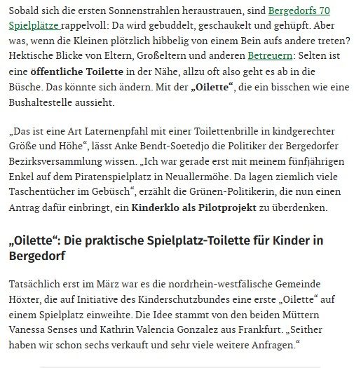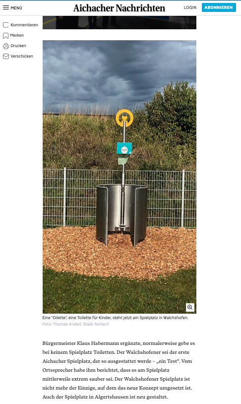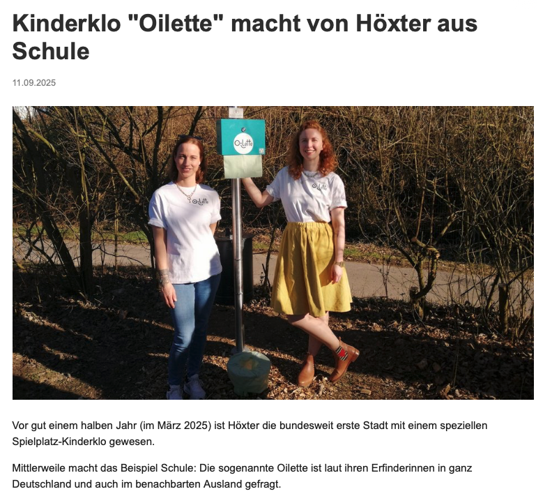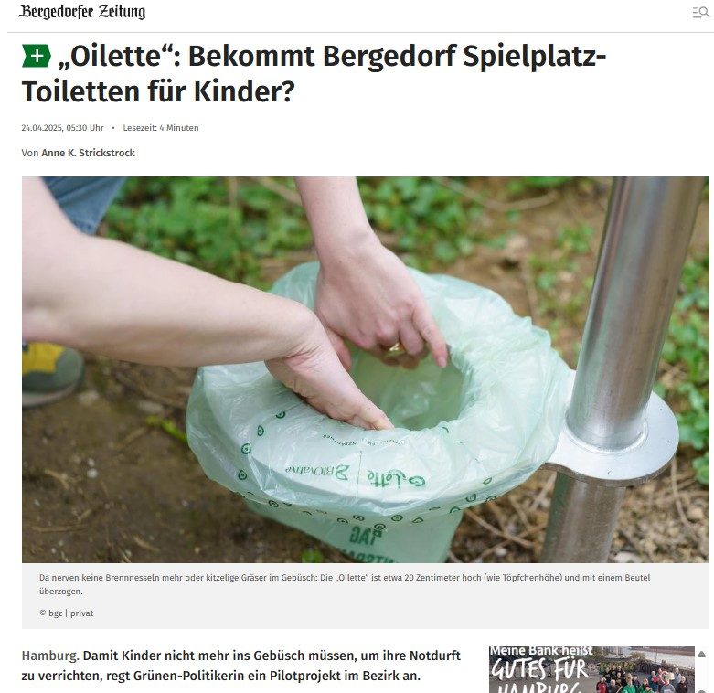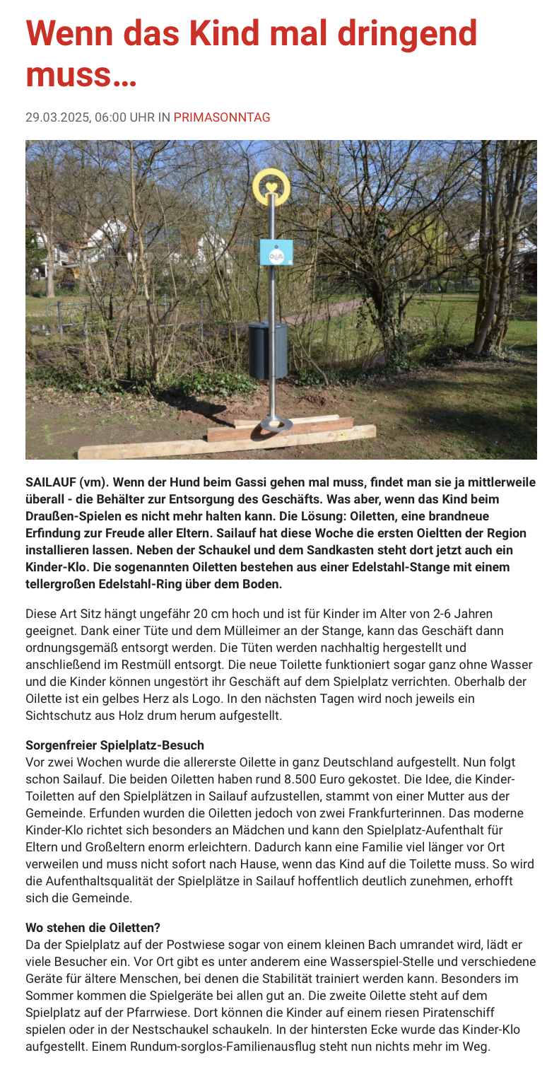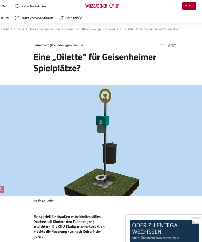 Wir dürfen verkünden, dass bei uns in der Nähe nun auch eine Oilette sichtgeschützt