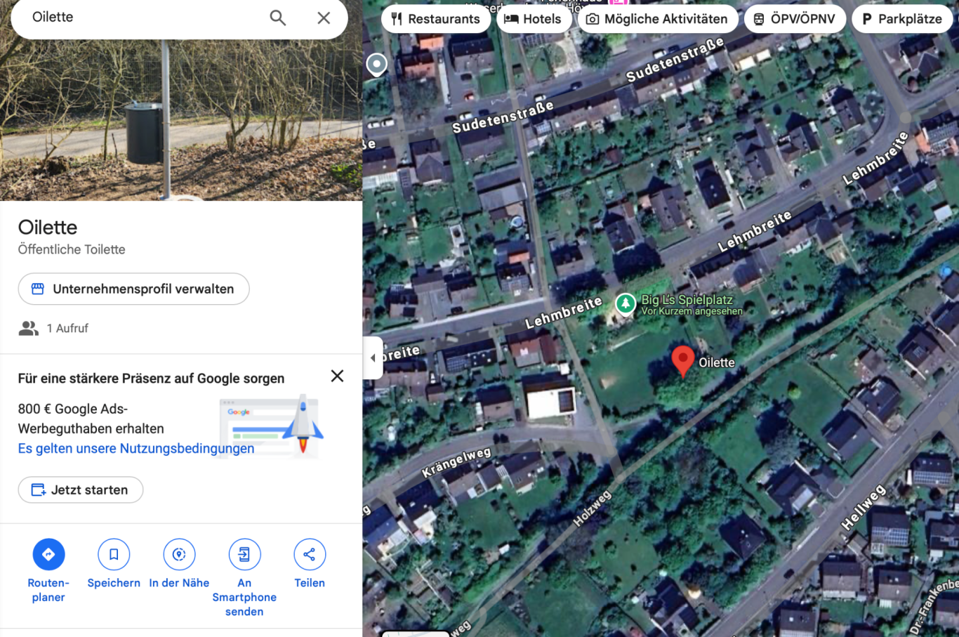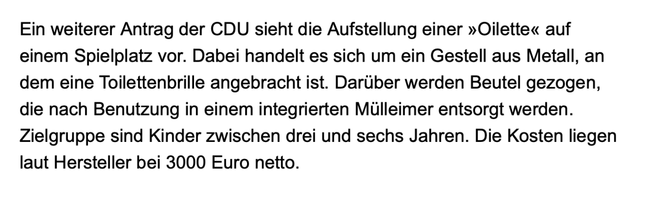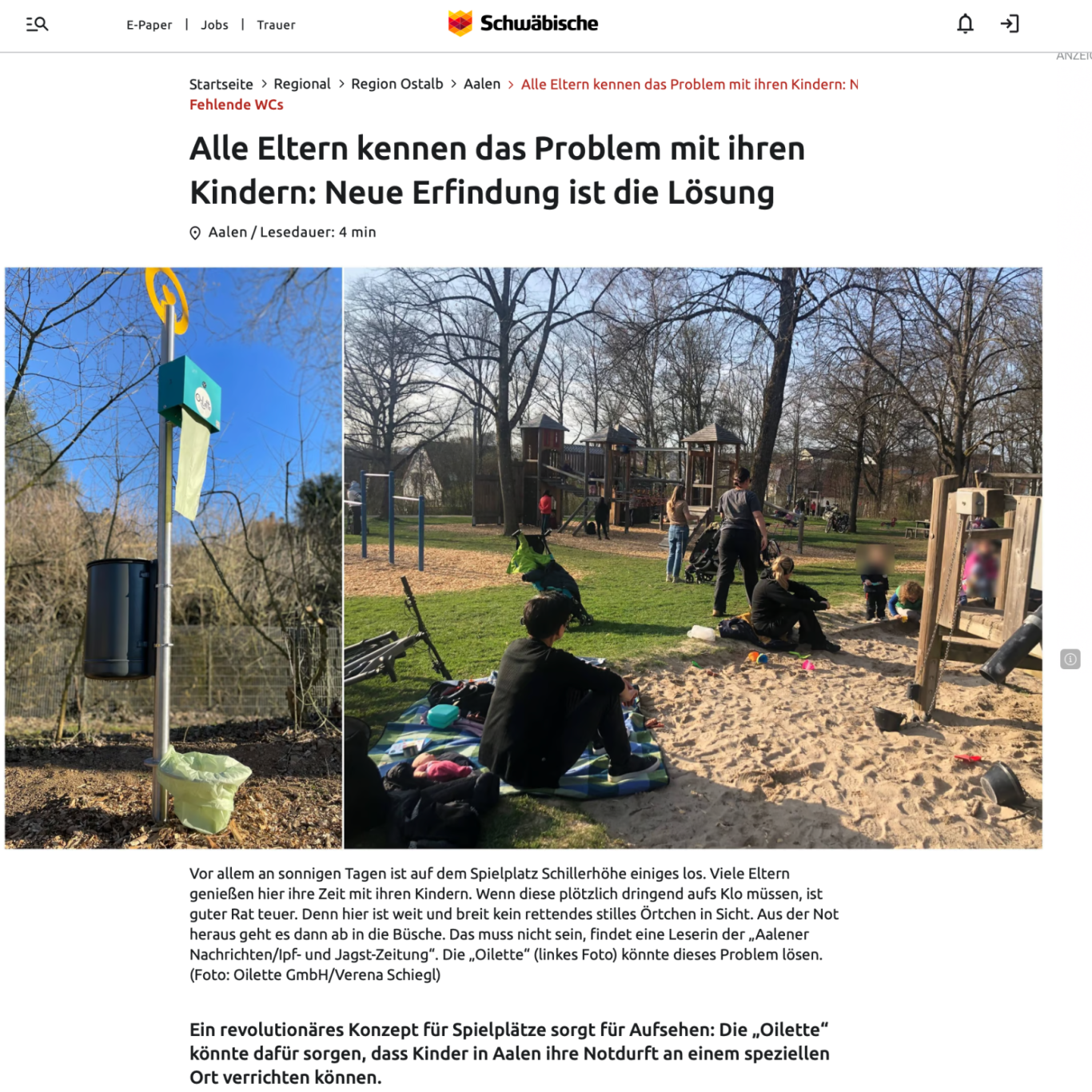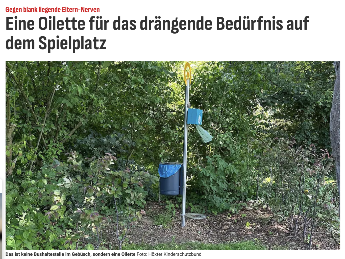 Wir dürfen verkünden, dass bei uns in der Nähe nun auch eine Oilette sichtgeschützt