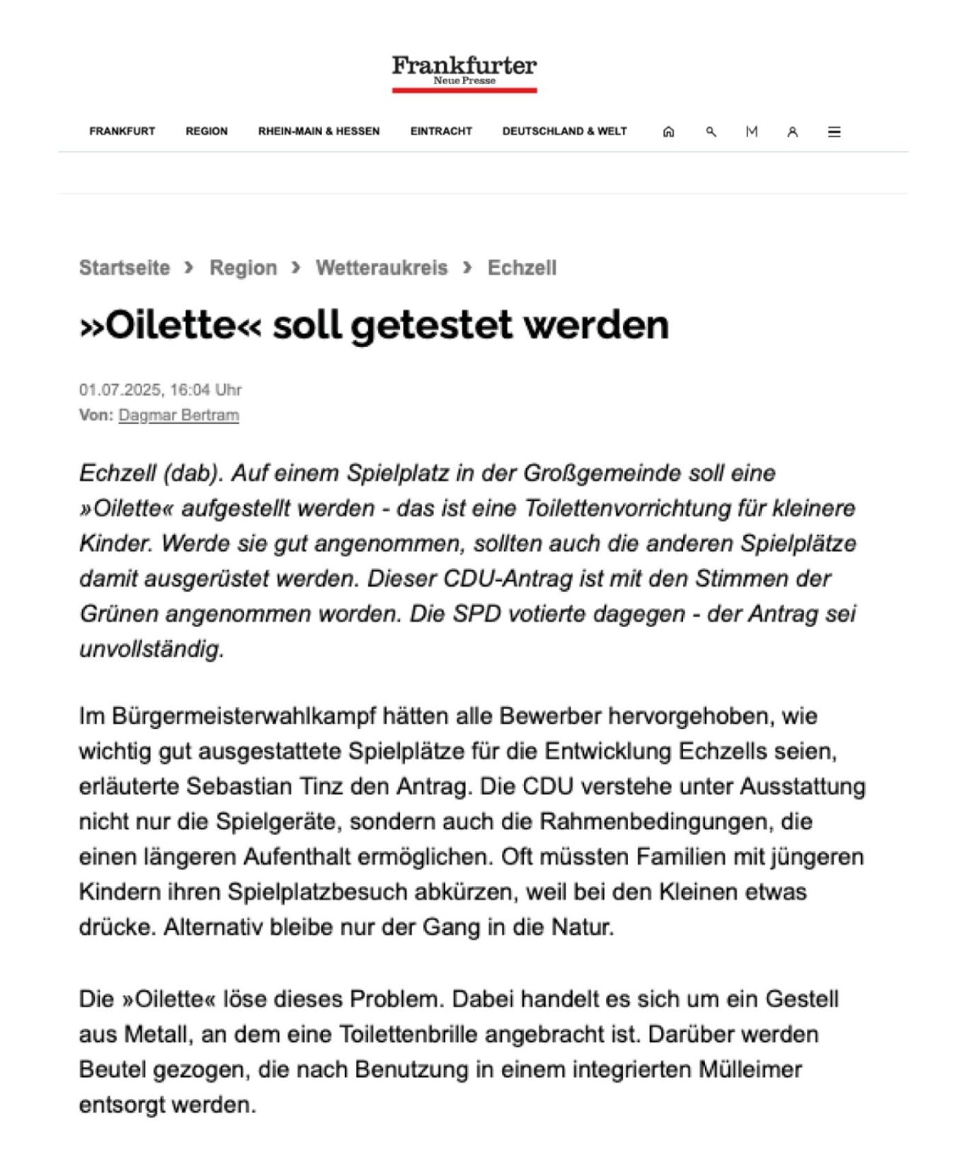Artikel im Frankfurter Wochenblatt von Ingrid Zöllner
