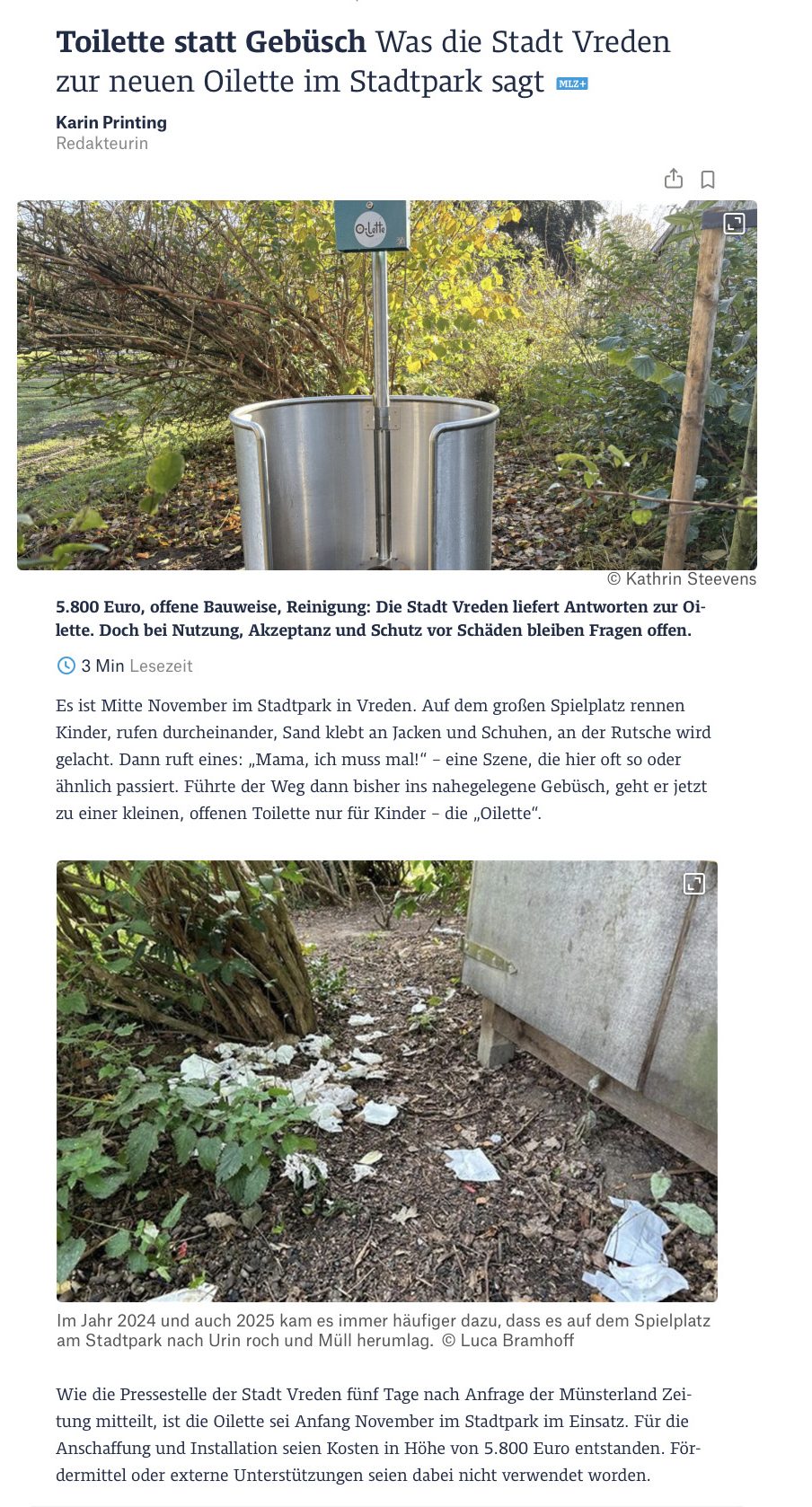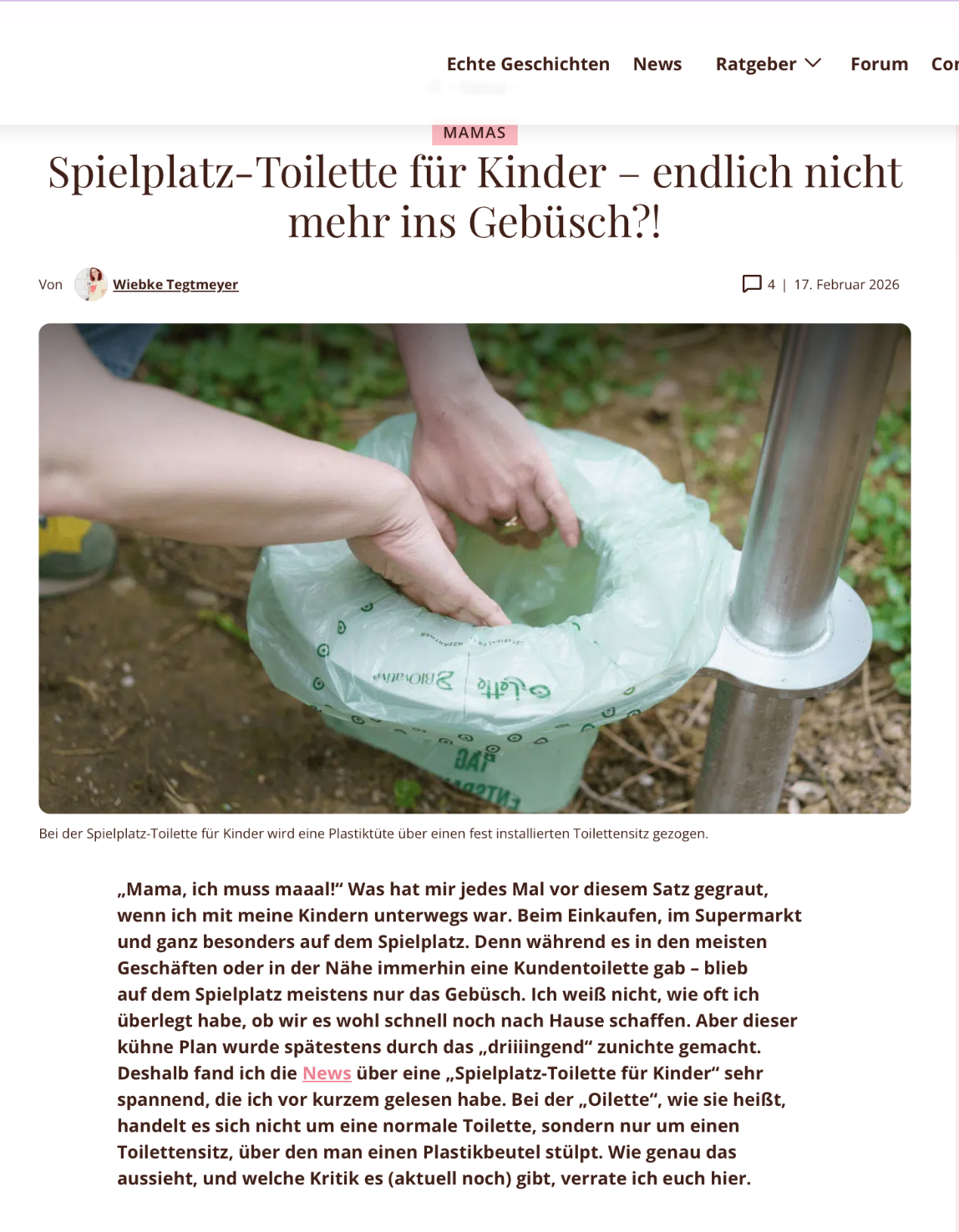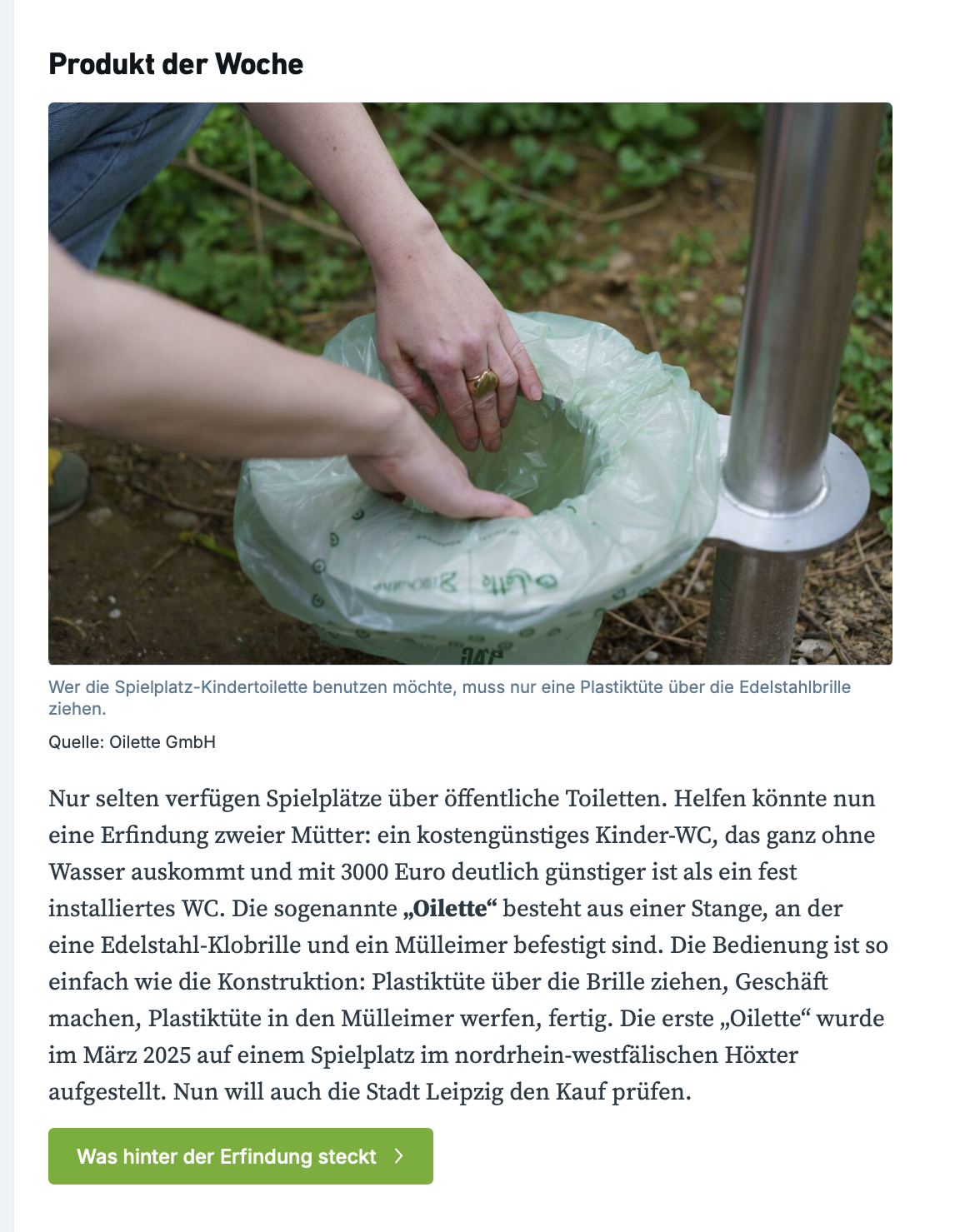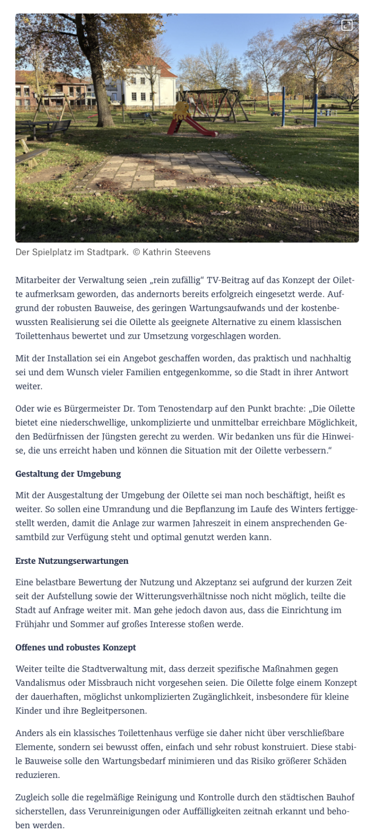 Wir dürfen verkünden, dass bei uns in der Nähe nun auch eine Oilette sichtgeschützt