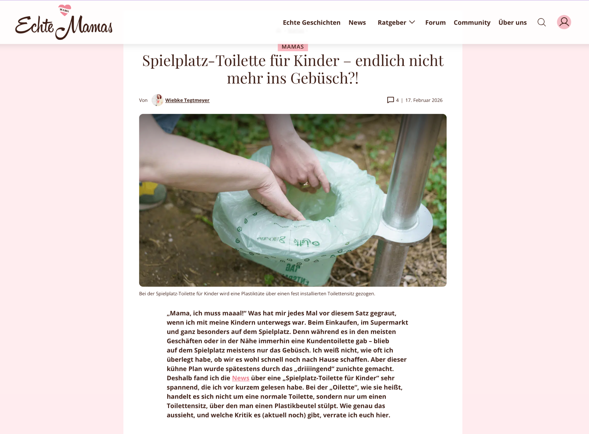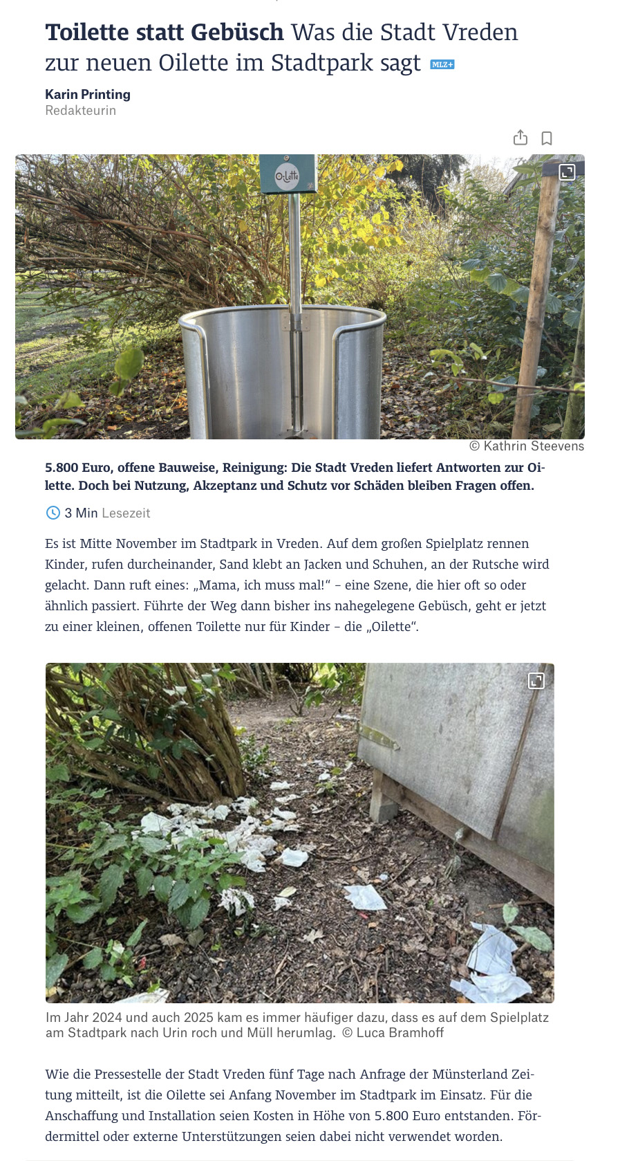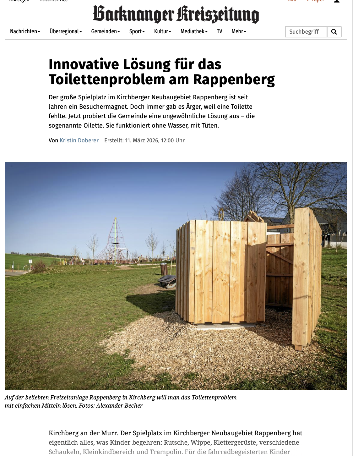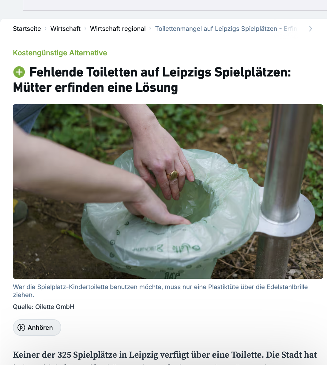 Wir dürfen verkünden, dass bei uns in der Nähe nun auch eine Oilette sichtgeschützt
